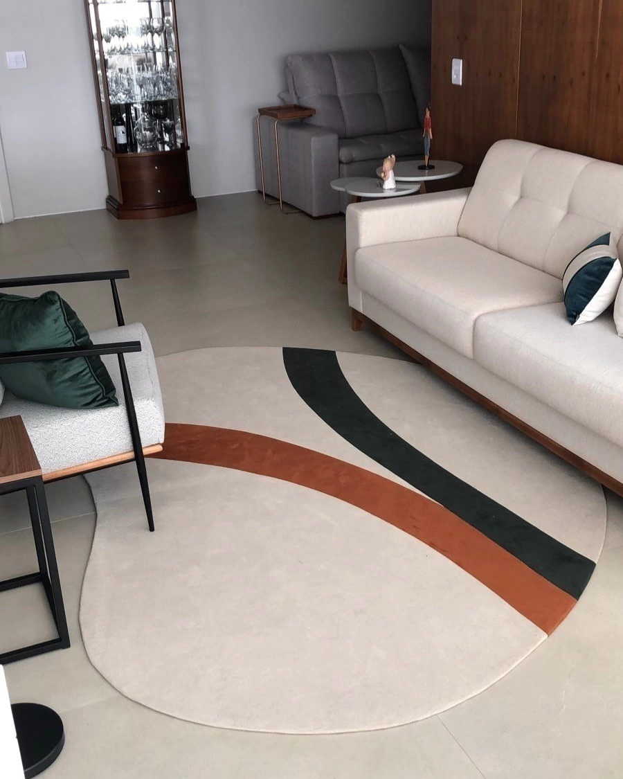 - Os desenhos orgânicos serão proporcionalmente ajustados conforme a medida do tapete.