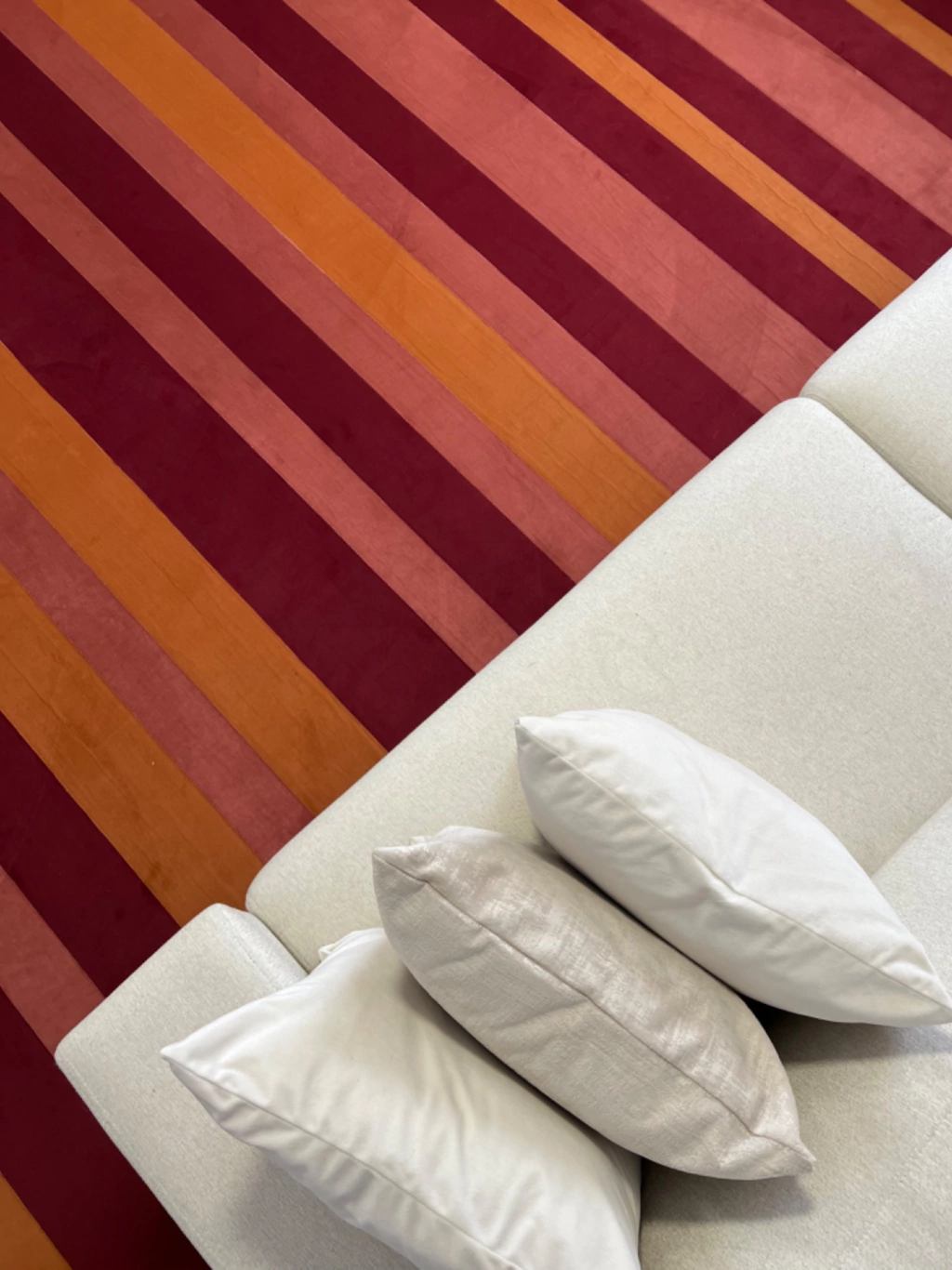 Faixas: Tapetes listrados são clássicos da decoração. Por serem versáteis, as listras podem ser muito estratégicas ao colorir e ampliar espaços.