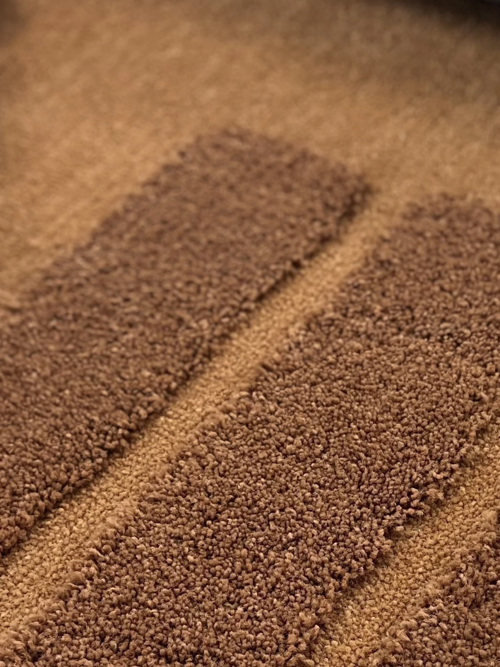 Um toque acolhedor e elegante para a sua sala. Este tapete retangular em nylon Econyl une os tons quentes de mel e caramelo com um design em relevo de duas alturas, criando textura e movimento visual com sofisticação sutil. A composição atemporal valoriza ambientes que buscam conforto sem abrir mão de estilo e sustentabilidade.